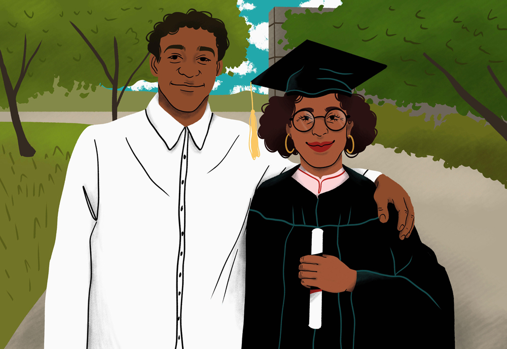 However, if I were to select an illustration from my Alamy collection that I find particularly effective in embodying my goals for licensing, I would choose my portrait of a mother and son on graduation day.
